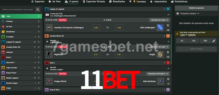 O 11Bet oferece uma grande seleção de opções de apostas em e-sports com probabilidades competitivas